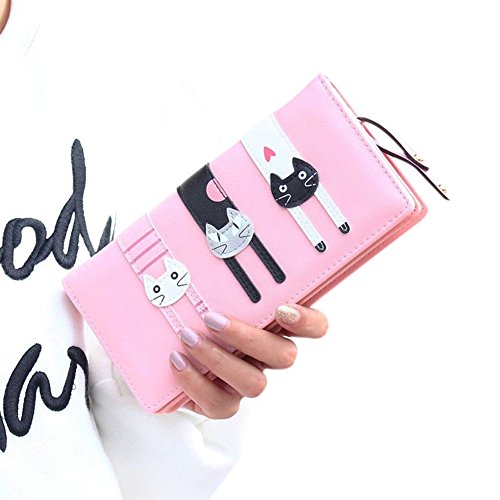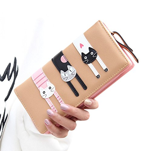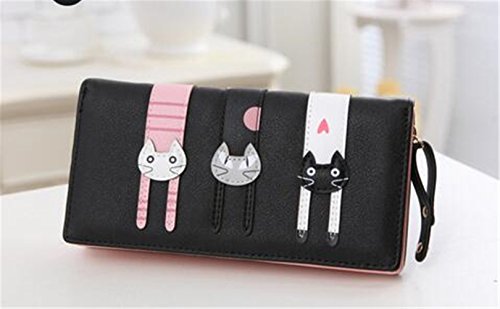 -. Feature : 猫三匹の可愛いデザイン。可愛いさを簡単に演出し、女子力アップ! / 高品質のPUレザーで丁寧に作り上げ、型崩れしにい、手触りがよい / 手を込んだ細工、こだわりのラウンドファスナー、女性の強い味方になります / 仕様:ファスナー開閉式。札入れ x 3/ コインポケット(ファスナー開閉式) x 1 / カードポケットx 11 / 写真入れx 1 / サイズ:18.6*9.5*3CM