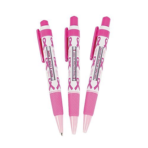 Pink Awareness Ribbon Message Pens (12 Pack) Black Ink. Breast Cancer Awareness