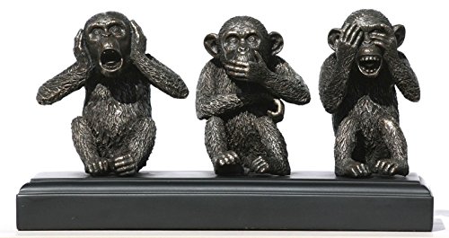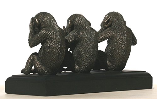 -. Binding : Kitchen -. Color : Bronze -. EAN : 6944197126966 -. Feature : Veronese Design - Incredible Detail / Dimensions (approximately): Height (with base) : 13 cm (5.12 inches) Length: 25.5 cm (10 inches) Net Weight: 2170 gr (4.78 lb) / MADE OF HIGH QUALITY HEAVY ART COLD CAST RESIN & BRONZE POWDER . THE SURFACE IS COATED WITH A LAYER OF BRONZE. / Professional packing Well protected within polystyrene casing and a sturdy box. It is nicely boxed and make excellent gift. -. IsAutographed : 0 -. Label : Veronese -. Manufacturer : Veronese -. MPN : WU76581A4 -. PackageQuantity : 1 -. PartNumber : WU76581A4 -. ProductGroup : Home -. ProductTypeName : HOME -. Publisher : Veronese -. Size : Height:13cm (5.12in) Length:25.5cm (10in) -. Studio : Veronese -. Title : Three Wise Monkeys See Hear Speak No Evil Statue Sculpture Bronze Finish