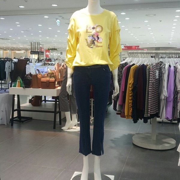 기본7부 티셔츠에 소매셔링과 앞판 프린트가 포인트되는 티셔츠입니다