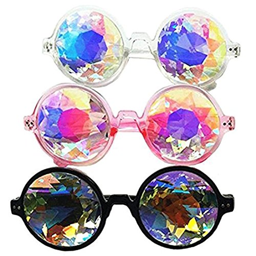 Set of 3pcs Festivals Kaleidoscope Glasses Rainbow Prism Sunglasses Goggles