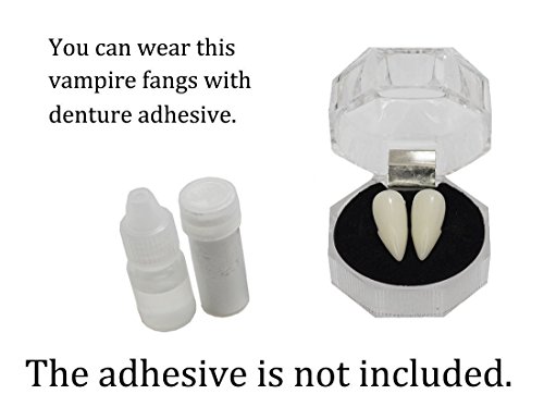 ADHESIVE IS NOT INCLUDED - You need prepare adhesive yourself to stick fangs on teeth. You can wear this vampire fangs with denture adhesive (or highly adhesive chewing gum, toffee, etc).