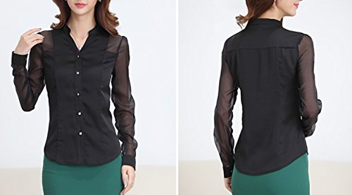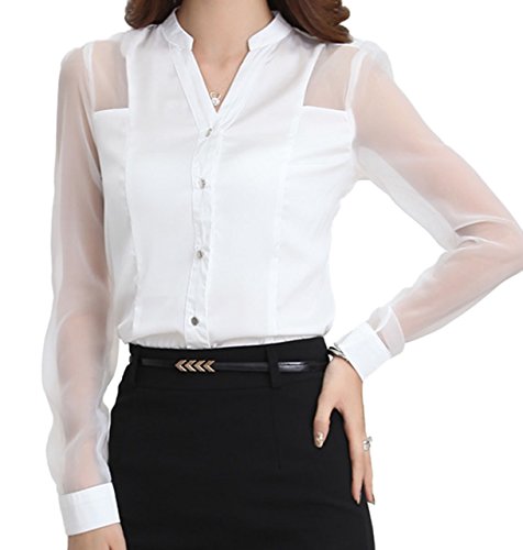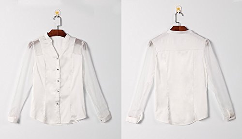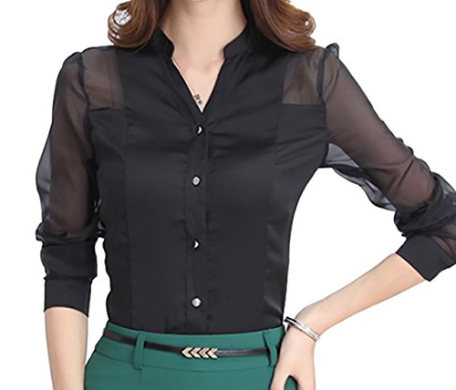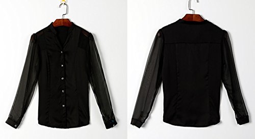 -. Feature : メイン素材:ポリエステル / 光沢のある素材と透け感のある素材のコンビデザインがオシャレなシャツです。 / フェミニンな雰囲気で大人かっこいいスタイル。 / 通勤スタイルやちょっとしたお出かけシーンなどにも使えるアイテムです。 / サイズ展開:M/L/XL/2XL 少し小さめの仕立てになっていますので、ゆったりと着る場合は1サイズ大きめをお勧めします。詳しくは商品説明をご覧ください。