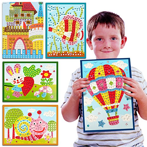 Studio : qiaoniu Publisher : qiaoniu Binding : Misc. Product Description The mosaic stickers are the popular toys best for children with little fingers and little artists,we offer a multiple package for you to choose and each pattern with different color stickers and accessories to complete the look!This is loved by kids and keep them not getting tired and concentrate their project for hours..The best toy Winner for parents magazine! Package 2 Contained: 1xHot Balloon pattern Mosaic 1xCar pattern Mosaic 1x Plane pattern Mosaic 1x Astronauts pattern Mosaic 1x Sun flower pattern Mosaic