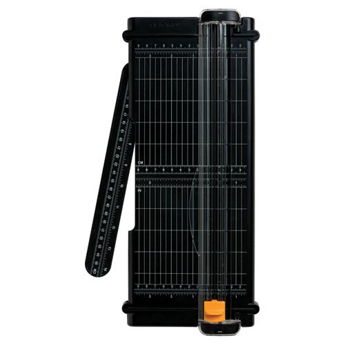 Trimmers are one of the "must haves" tool for a any home and office. There are three styles: Portable, known for quick and easy use; Rotary, known for precision cutting and having decorative blade solutions; Bypass, known for low maintenance. Fiskars takes pride having developed the Portable Paper Trimmer (PPT) category. Fiskars 12 Inch SureCut Recycled Titanium Portable Paper Trimmer is the ideal size for trimming coupons, office paper or photos as well as compact for easy storage. Its patent pending SureCut cut-line indicator shows you where the blade will cut, making it easier to align your project perfectly before you cut! The patented Triple Track System interlocks the blade and rail resulting in more accurate, precise straight cutting. This rail also pivots open to allow you to easily insert your project. The Recycled Titanium Portable Paper Trimmer has a precision printed scale and grid on a 100% recycled post-consumer base (the entire trimmer is 80% recycled post-consumer product) that allows the user to accurately align his/her project before making a cut. The titanium blade has a triple coating of titanium carbide that reduced friction and wear resulting in a sharper blade. This trimmer includes an ergonomic, high profile cutting carriage for a better grip on the blade to cut with and rubberized feet to keep the base from moving while cutting. With a minimum ½ Inch between the front and back fence, the 9 Inch SureCut Portable Paper Trimmer makes cutting small strips easy and cleanly. The integrated paper clamp allows you to hold your paper in place with the cutting rail and keeps fingers from touching your photos and potentially smudging them. Capable of cutting 7 sheets of 20lb copy paper up to 12 Inch long, the 12 Inch SureCut Recycled Titanium Portable Paper Trimmer uses replacement blade style I (Fiskars 01-005740) and comes with a Lifetime Warranty.