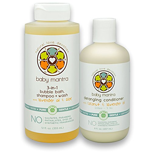 Toddler bath combo includes Baby Mantra Bubble Bath, Shampoo and Wash and Detangling Conditioner which complement each other perfectly.