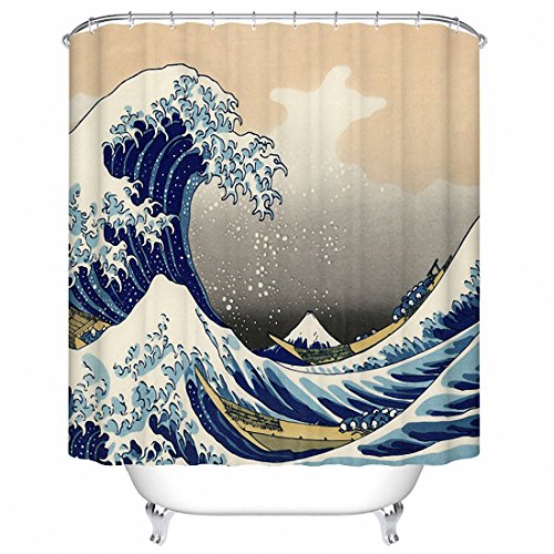 Custom Shower Curtain Mildew Resistant Waterproof Polyester Fabric Bathroom Shower Curtain Set with Hooks Bathroom Accessories Japanese Style seawave 66"(w) x 72"(h)