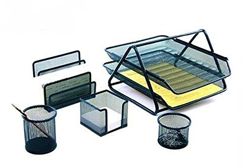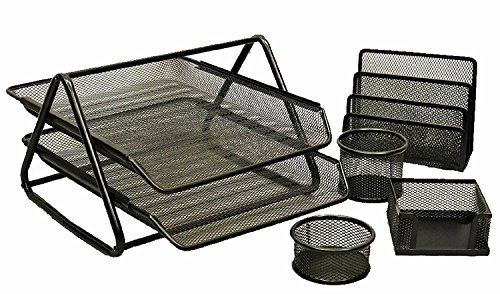 KLEAREX™ 5-Pc Office Desk Set in Black Mesh to Organize Simplify Reduce Workplace Clutter and Improve Efficiency