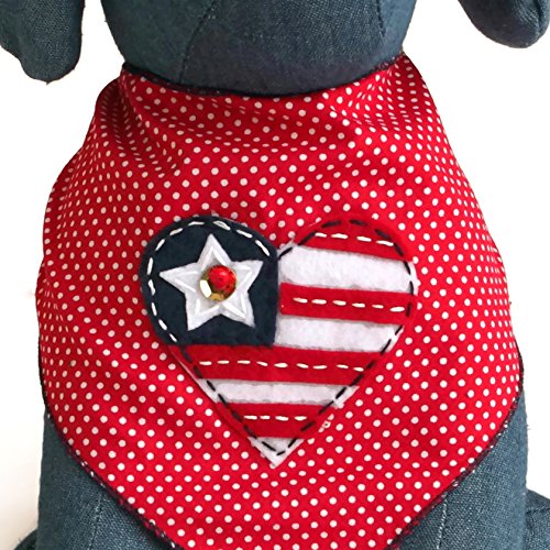 Studio : Doggone Cute Inc. Publisher : Doggone Cute Inc. Binding : Misc. Product Description Designer handmade dog bandana with Patriotic themed felt appliques on 100% Cotton fabric. This product fits most small to medium sized dogs. Medium Size fits 8"-15" neck line. Large Size fits 16"-24" neck line. 0