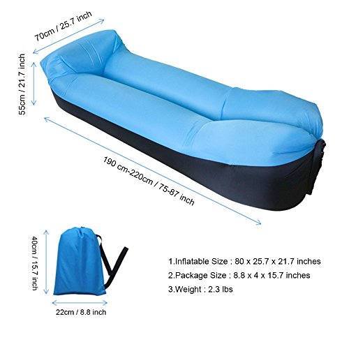 Other Features: ◆ Most Relaxing Air Lounger - hottest prospect on the market ◆ Multi-layered material - lightweight, increased durability, easy-to-clean, odorless, dream series; ◆ It remains inflated for at least 5 hours. ◆ Our lounger sofa is made from a special fabric which is extremely lightweight, water-resistant, tough environmentally friendly.