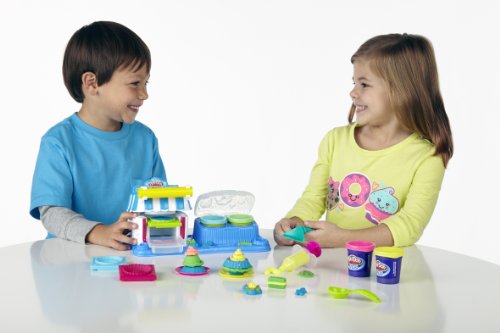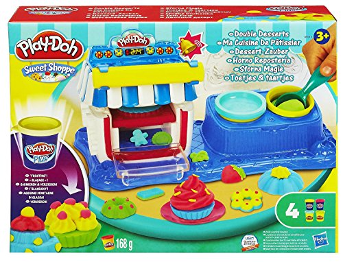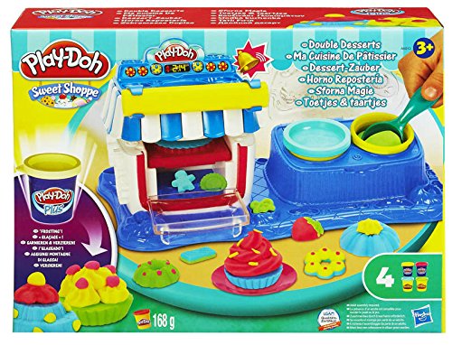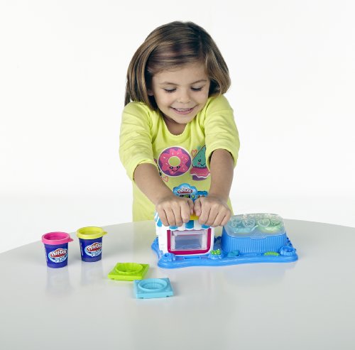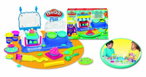 Includes Playset base, oven, oven top, 3 oven molds, 2-piece extruder, server, scoop, roller, 2 plates, instructions, 2 cans of Play-Doh Brand Modeling Compound, and 2 cans of Play-Doh Plus compound.