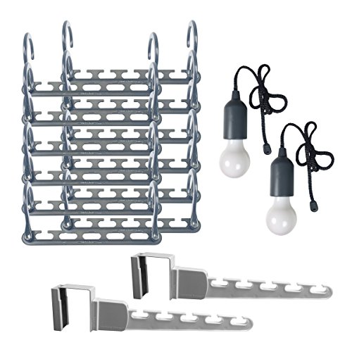 Wonder Hanger Max Deluxe – Includes 12 Wonder Hanger Max in Grey ,Magical Space Saver Hangers for Your Closet and Door – Comes Fully Assembled, with 2 Pull Lights and 2 Over the Door Wonder Hangers