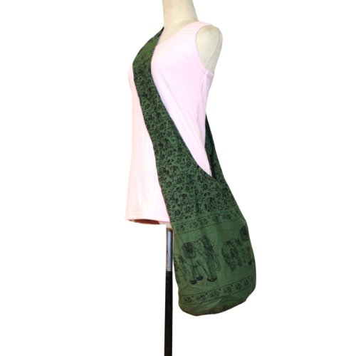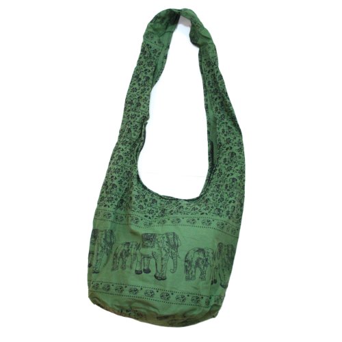 Hippie Elephant Sling Crossbody Bag Shoulder Bag Purse Thai Top Zip Handmade New Color Green