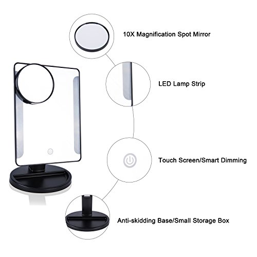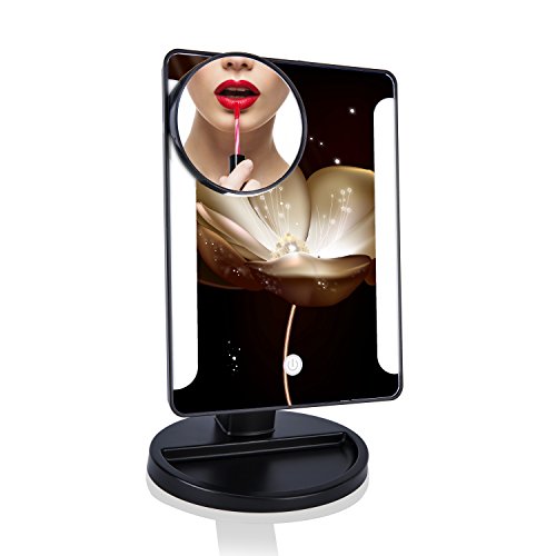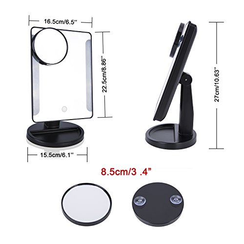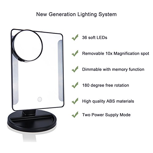 Touch Screen 36 LED Lighted Vanity Mirror/Natural Bright Light Makeup Mirror with Removable 3.5 Inches 10x Magnification Spot Mirror,Movable & Two Power Supply Mode,Batteries not Included(Black)