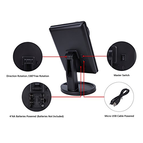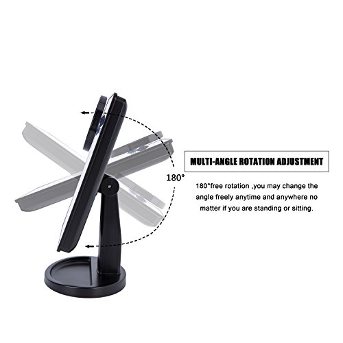 - Durable & Portable-Made from Premium Quality Material,nice looking and resistance for scratch.180¡ãrotatable,can be fixed at any positions.Rectangle mirror size:25.5cmx17cm(10"x6.7"),Round mirror diameter:8.5cm(3.5");Total height of the mirror(include the base):27cm(10.5");Length of the base:15.5cm(6")