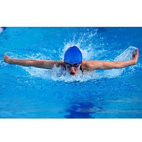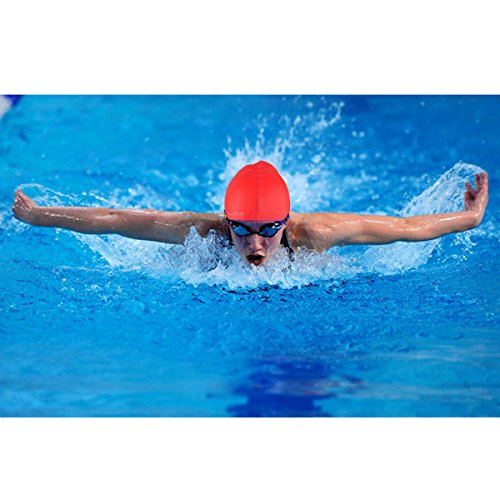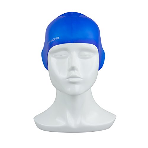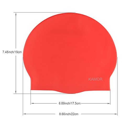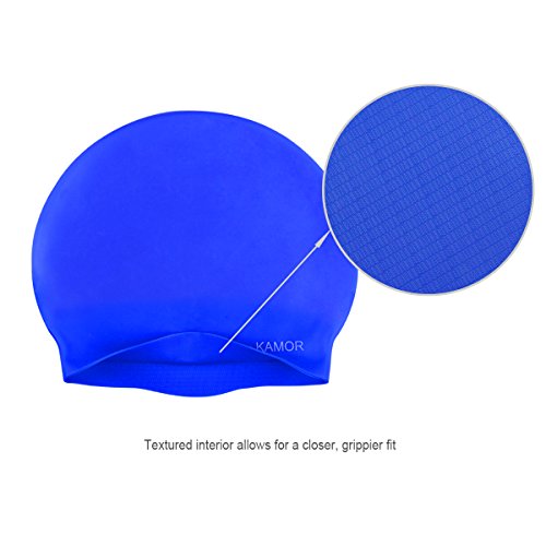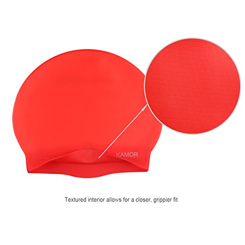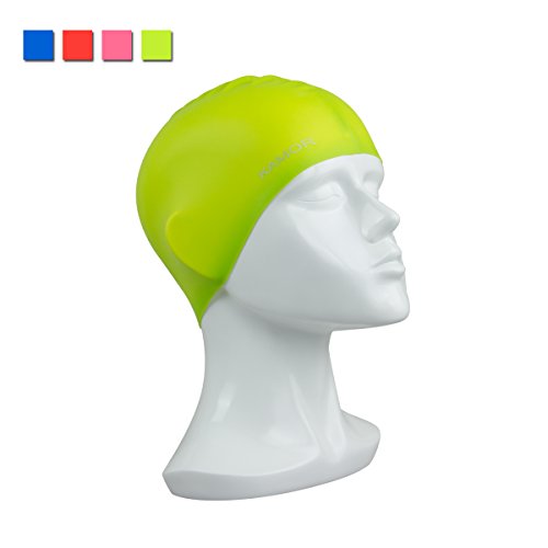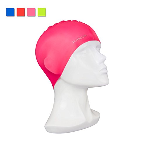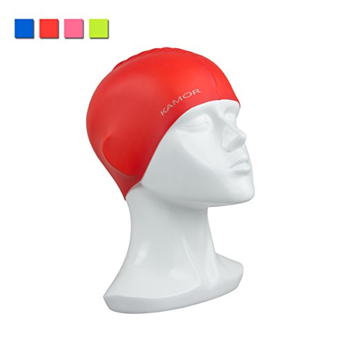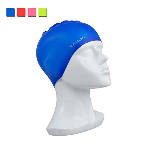 Kamor® #5 Swim caps for junior / teens / boys / girls - silicone swimming cap - Highly elastick, Large stretch, Greater durability than latex swimming hats - Eco friendly, Non-Allergenic, Lightweight