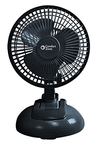 Comfort Zone CZ6C - 6" Clip-On Fan. Perfect for recessed use in home or office or on a table, desk or RV. Adjustable tilt to aim airflow exactly where you need it. Easily clips on to any surface with a strong clamp for firm grip. Whisper quiet, reliable operation. Two speed rotary control adjusts speed to customize air flow: high or low. Built in carry handle. Tough break-resistant ABS plastic blades. Poly-coated metal safety grill prevents any user injuries and damages to the fan itself. Wind Speed 9.29 feet per second. Measures: 6.75" long x 6.50" wide x 7.50" high. ETL listed. Color: White. Did you know that electric fans can do more than just cool? They circulate the air, keeping it in motion, maintaining a fresh breeze that cools as well as reduce humidity levels. Fans also add ventilation and prevent the inhalation of dangerous gases and fumes. As a top brand in the Americas, Comfort Zone is featured by some of the largest and most recognized retailers worldwide. All Comfort Zone products are designed and tested to exceed UL, ETL, SAA, CE, NOM and other global marks for quality. They are manufactured under the supervision of our U.S. and China based Engineering and Technical Staff. HBC Home & Hardware Products - driven to perfection producing quality products for everyday living.Feature