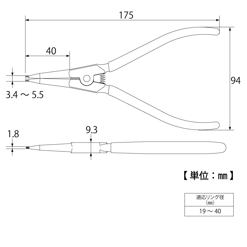 TOP SS175 175mm (6.9 ) External Snap Ring Pliers SS-175