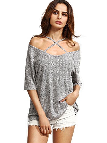-. Title : SheIn Women's Crisscross Cold Shoulder Half Sleeve T-shirt