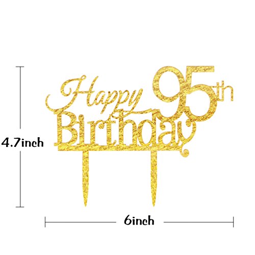 INNORU® Happy 95th Birthday Cake Topper - 95 Anniversary Birthday Gold Glitter Party Cake Decoration