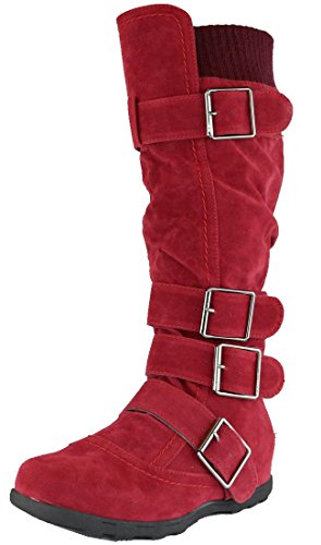 -. Binding : Apparel -. Brand : Cambridge Select -. Department : womens -. Feature : A MUST HAVE: Slouchy mid-calf boot with knee-high sweater cuff & multi-buckle detail is perfect for everyday, casual wear / EASY ON/OFF: Inside zip closure allows you to take boot on & off with ease / COMFY: Low flat rubber heel is perfect fall/winter & provides all day comfort & support / VEGAN FRIENDLY: Luxuriously soft faux suede throughout / Imported -. ProductGroup : Shoes -. ProductTypeName : SHOES -. Title : Cambridge Select Women's Buckle Sweater Knee High Flat Boot