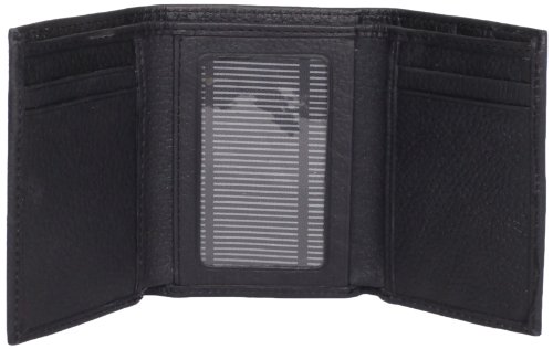 Trifold wallet features four card slots, an i.d. window and a fully lined bill compartment