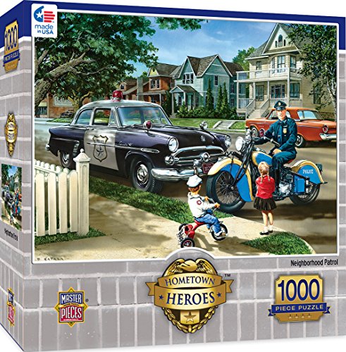 -. Binding : Toy -. Brand : MasterPieces -. EAN : 0705988717383 -. Feature : Vintage police vehicles puzzle / Made in USA - 1000 pieces in finished 19.25 inch x 26.75 inch puzzle / Read about artist Dan Hatala & collect the Hometown Heroes series / MasterPieces - An American Puzzle & Game Company. We stand behind our products and guarantee your satisfaction / ŸThick recycled puzzle board and random cut pieces ensure a tight interlocking fit and create a fun experience -. Label : Masterpieces Puzzle Co. -. Manufacturer : Masterpieces Puzzle Co. -. Model : 71738 -. MPN : 71738 -. NumberOfItems : 1 -. PackageQuantity : 1 -. PartNumber : 71738 -. ProductGroup : Toy -. ProductTypeName : TOYS_AND_GAMES -. Publisher : Masterpieces Puzzle Co. -. Studio : Masterpieces Puzzle Co. -. Title : MasterPieces Hometown Heroes Neighborhood Patrol - Vintage Police Vehicles 1000 Piece Jigsaw Puzzle by Dan Hatala -. UPC : 705988717383 -. Warranty : No Warranty