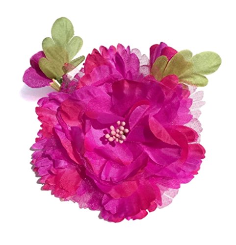 Cuteque International Organza and Silk Peony with 2 Rosebuds Attached (Pack of 3), 4", Azalea