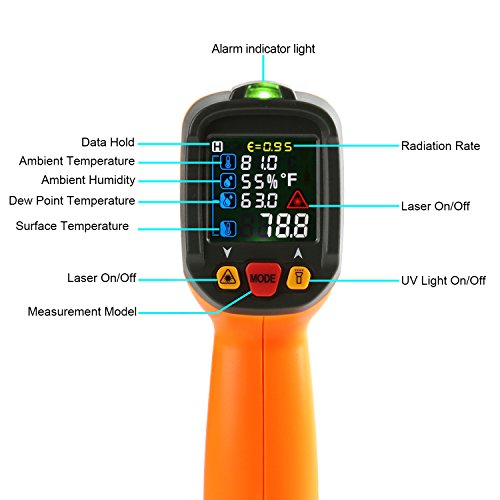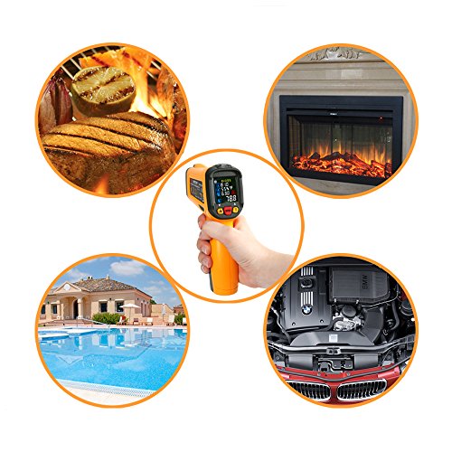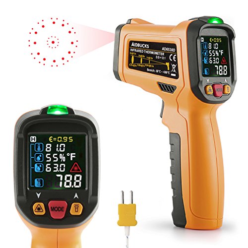 Infrared Thermometer Janisa AD6530D Digital Laser Non Contact IR Temperature Gun -58°F to 1472°F With Color Display K-Type thermocouple for Kitchen Cooking BBQ Automotive and Industrial