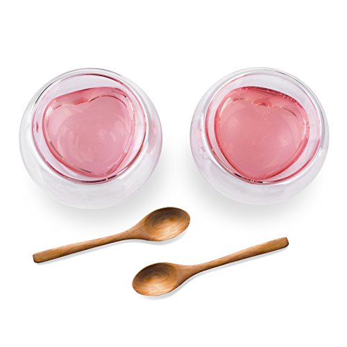 -. Feature : Observe an extreme step up in tea color with the clear and transparent cup design which brings out the best in tea colors / Small Heart Shape Cup is a romantic design for couples and lovers to share their healthy beverage together / Double wall Insulated design keeps hot tea/espresso hot long enough but still comfortable to hold / Oolong, Black Tea, Chinese tea, Green Matcha Tea, Chai, Flowering or any herbal tea: Take your pick and indulge in your favorite teas with this romantic heart shape tea cup with your love ones every morning / You get 6 small glass tea cups ( each 1.6oz) in a set. Perfect gift for couple, lovers, or just married.