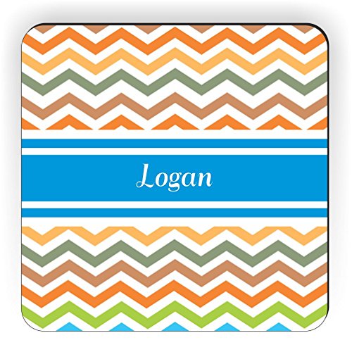 Rikki Knight "Logan" Blue Chevron Name Design Square Fridge Magnet