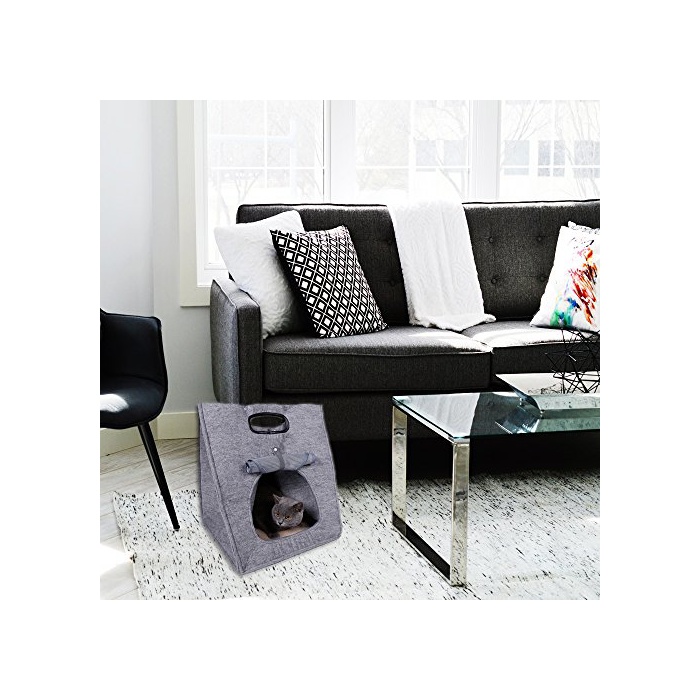 Paulele 다기능 애완동물 용품 캐리 백 애완동물 하우스 애완동물 베드 3개의 용도 펠트 소재 귀여운 멋쟁이 씻을 수 있다 (그레이)