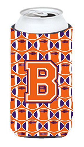 Letter B Football Orange, White and Regalia Tall Boy Beverage Insulator Hugger CJ1072-BTBC