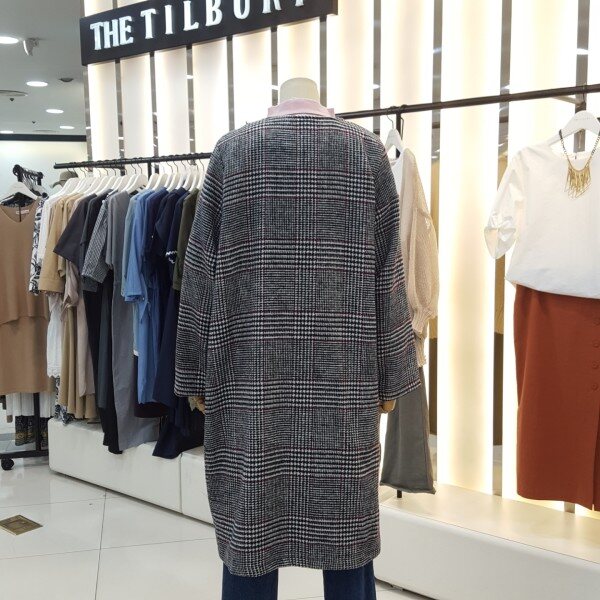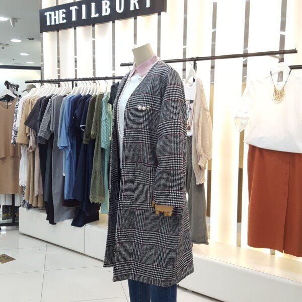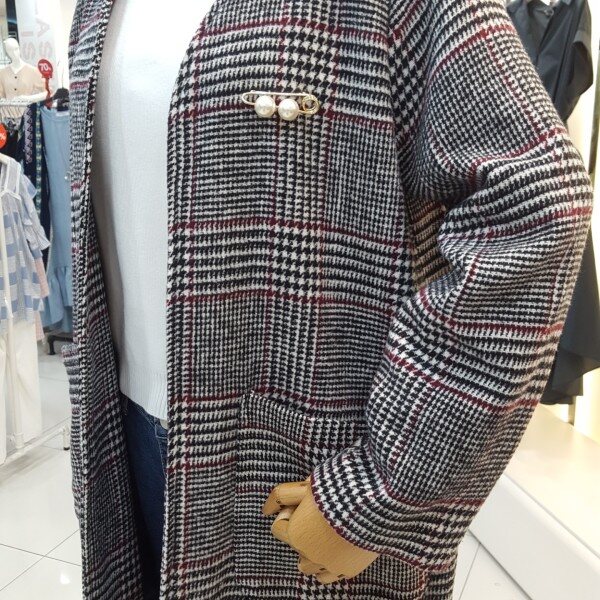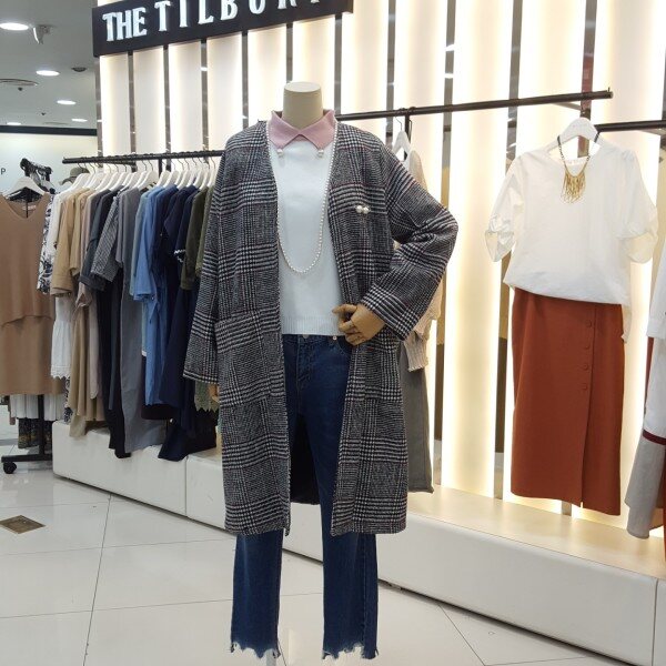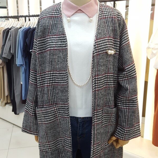 노카라 롱한 기장감으로 멋스러운 연출이 가능하며 체형커버에도 좋은 스타일입니다.진주브로지장식이있어 고급스럽고 세련된 분위기를 연출하실수있습니다.