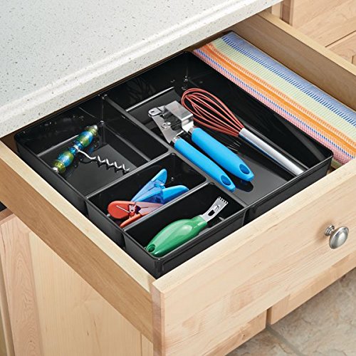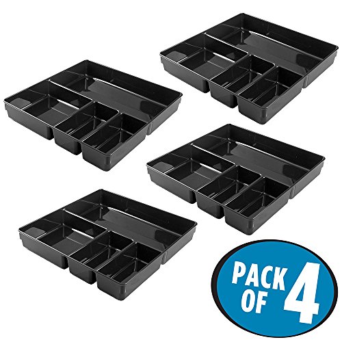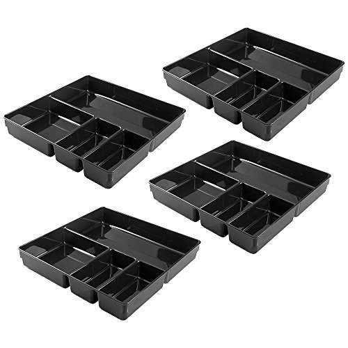 InterDesign Linus Office Drawer Organizer for Pens, Rulers, Scissors - Pack of 4, Black