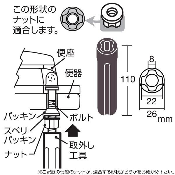 便座の取付や取り外しに便利な工具です。※ご家庭の便座のナットが、適合する形状かどうかをお確かめ下さい。
