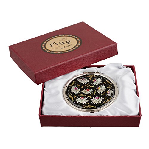 MOP Antique Compact Makeup Mirror Travel Magnifying Double Sided Mother Of Pearl chrysanthemum mms33