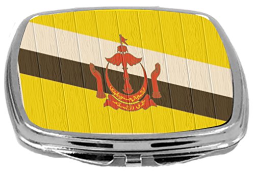 Rikki Knight Compact Mirror on Distressed Wood Design, Brunei Flag, 3 Ounce