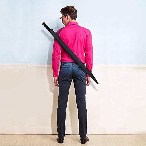 -. Feature : THE ULTIMATE GOLF UMBRELLA With a 62 / 68 inch oversize canopy and heavy duty design the G4Free Ultimate Golf Umbrella is an ideal companion for golfers, the business professional or for daily life. With its sleek all black design, comfortable EVA / ABS grip, sturdy frame and auto open mechanism, the G4Free Ultimate Golf Umbrella is perfect in a metropolitan city or a sports field! / PROTECTS FROM THE ELEMENTS won't get caught in the rain (or sun!) The canopy uses ultra water resistant 210T pongee micro-weave fabric. This silk derived material is lightweight, mold resistant . / YOU (WON'T) BE BLOWN AWAY The hardened steel frame will ensure that your umbrella is VIRTUALLY WINDPROOF. Wind will simply not break it. / OPENS FAST Automatic Open functionality ensures that there will be no delay to your comfort. Fast and reliable automatic opening function. Simply press the button on the handle to open. / LASTS A LIFETIME We engineer our umbrellas to stand the test of time. The Ultimate Travel Umbrella is constructed with hardened stainless steel coated in high-grade black resin. For the ribs and tips we use fibreglass, which is flexible and durable. The canopy is created using chain stitching with nine stitches per inch. 100% MONEY BACK GUARANTEE. We stand behind the durability of our goods and offer an unconditional guarantee against any defects in craftsmanship.