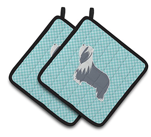 Caroline's Treasures Bearded Collie Checkerboard Blue Pair of Pot Holders BB3717PTHD, 7.5HX7.5W, Multicolor