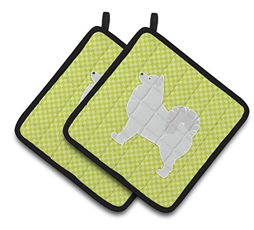 Caroline's Treasures Samoyed Checkerboard green Pair of Pot Holders BB3859PTHD, 7.5HX7.5W, Multicolor