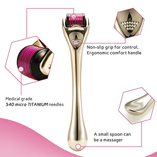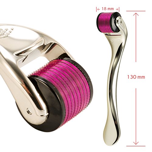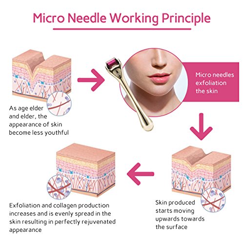 - ♚ Simple and Safe for Use - Just disinfect before any use and roll vertically, horizontally, and diagonally on treatment area about 4 - 5 times each before applying your favorite topical skin product. Due to the micro needle ,the derma roller is painless and safe enough to be used on your face and most other parts of the body.
