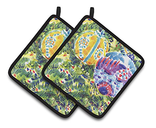 Caroline's Treasures Christmas Tree Yellow & Purple Ornaments Pair of Pot Holders 6120PTHD, 7.5HX7.5W, Multicolor