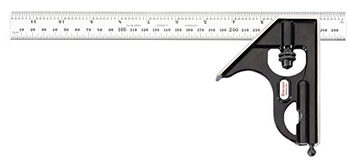 Starrett C33MEH-300 Forged, Hardened Steel Square Head With Satin Chrome Blade Combination Square, Smooth Black Enamel Finish, 300mm Size