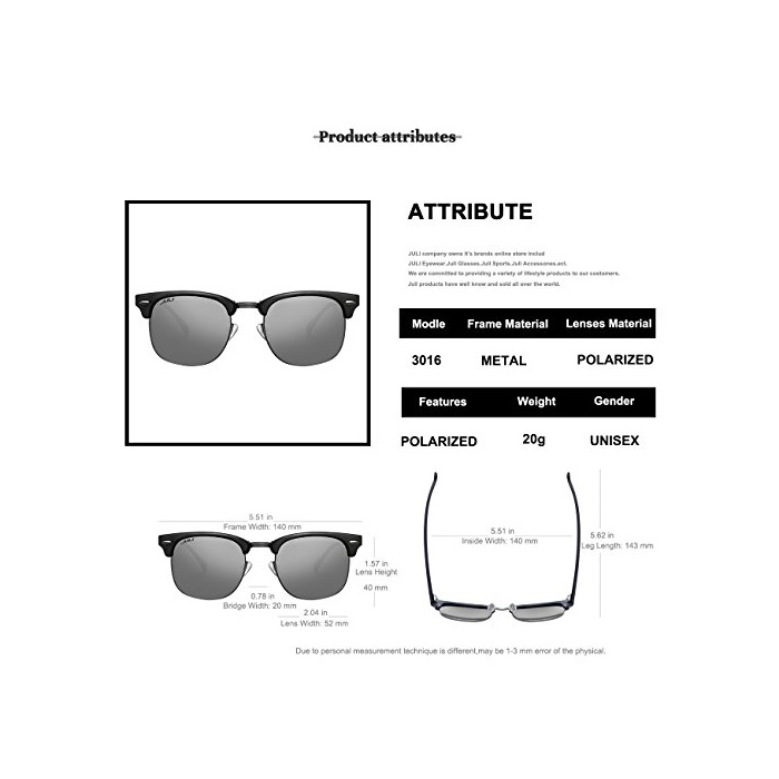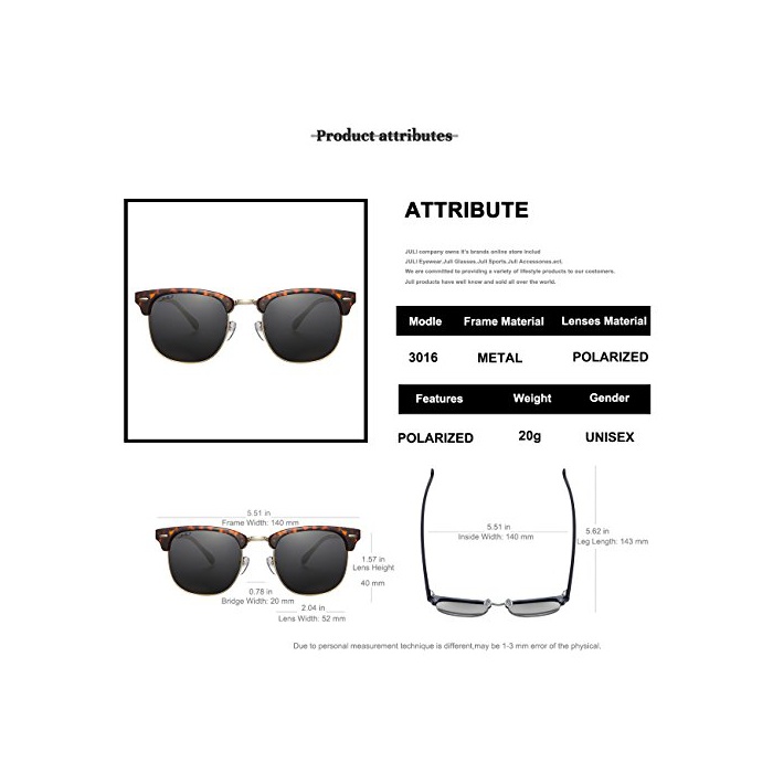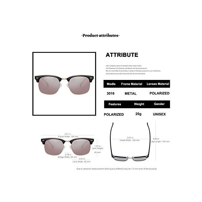 JULI EYEWEAR JULI 맨즈 레디의 3016 빈티지 Clubmaster 반테두리 썬글라스