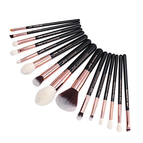 Jessup 15pcs Beauty Foundation Makeup Brush Tool Kit Power Highlight Eyeliner Fiber hair Brushes Set Black/Rose Gold T162