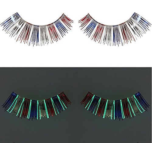 Zinkcolor Red Blue Foil False Eyelashes G241 Glow In The Dark Halloween Costume