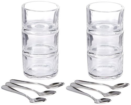 (Le'raze)/Kitchen Dining/Tableware/DIRECT FROM USA/Set Of 6 Crystal Clear Glass 6 Ounce Dessert Ice Cream/Fruit Bowls, With 6 Taster Spoons, 12 -P...