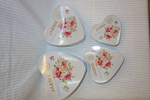 Heart Shaped Storage Tins,trinket boxes Shabby Chic, Floral Design Set of 4