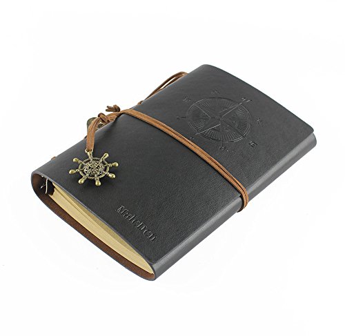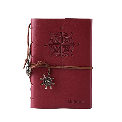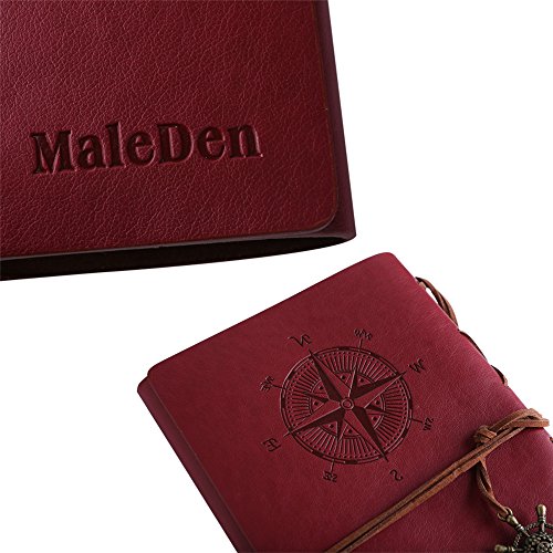 MALEDEN Maleden Leder-Tagebuch, Notizbuch, nachfullbar, Spirale, taglicher Notizblock, klassisch, gepragt, Reise-Tagebuch, mit blanko Seiten und Retro-Anhangern